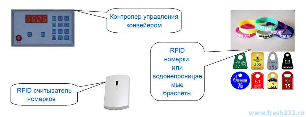 считывателя номерков и непосредственно – самих номерков с встроенными RFID чипами.