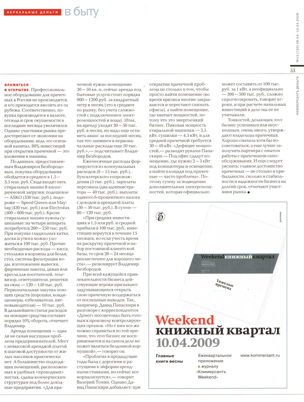 Поэтому работающие сейчас в Москве и Петербурге прачечные располагаются в основном в студенческих городках неподалеку от общежитий или прямо в них. Так, в столице частные предприниматели открыли свои прачечные в главном здании МГУ, в Доме аспиранта и студента на улице Шверника, в филиале Дома студента на Ломоносовском проспекте, в гостиничном корпусе РХТУ имени Менделеева, в Митине. Правда, не все выдерживают давление кризиса и успешно решают административные проблемы: недавно закрылись прачечные в общежитии МГИМО на улице Новочеремушкинской и в Измайлове.